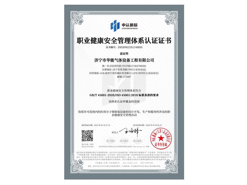 職業(yè)健康安全管理體系認證證書